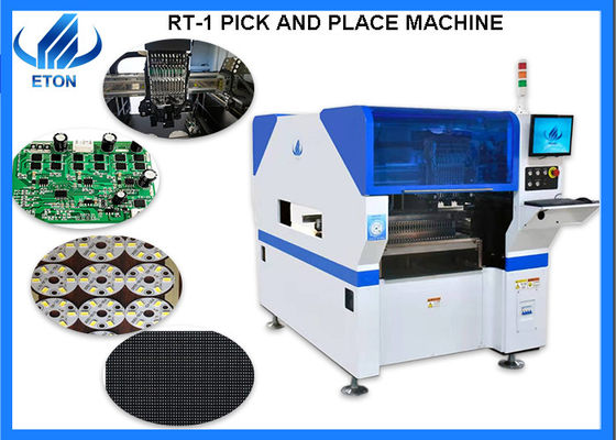 RT-1 multifunctional pick and place machine with single module, mounting mode is group picking and separately placing, separately picking and separately placing, with 40000 CPH capacity, 32 PCS feeders station and 10 PCS of head.